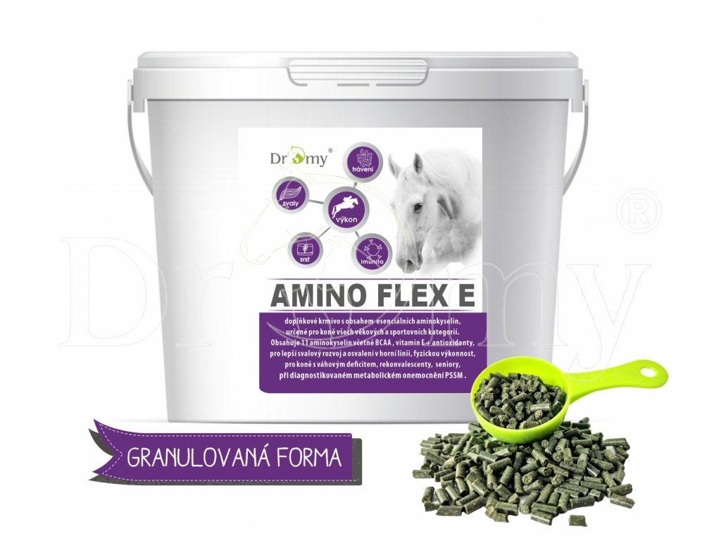 Amino Flex E je granulované doplnkové krmivo s obsahom esenciálnych aminokyselín